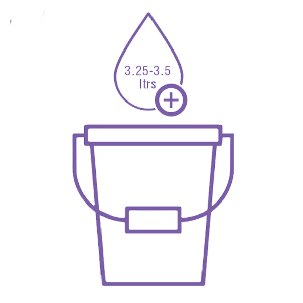 - Pour 3.75 litres of clean water into bucket.