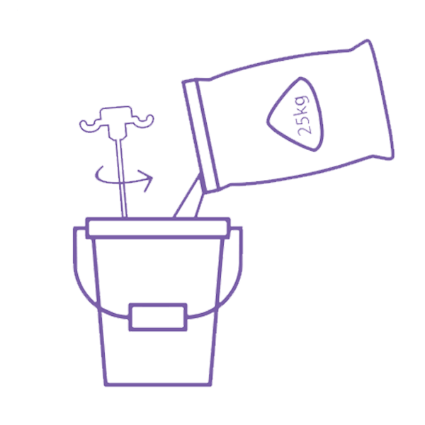 - Empty entire 25kg bag of Tokyo Superset Bock Bond gradually in to the same bucket while mixing using a stirrer (rpm <500)